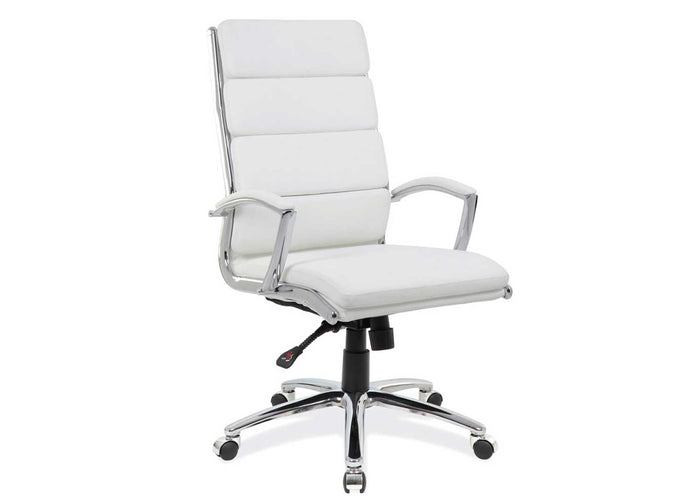 The Official Lincoln High-Back Chair is perfect for those looking to change the world one day's work at a time. Rest your head and back on the smooth leather soft vinyl while also using the sturdy armrests. Twin wheel carpet casters on a chrome frame with 360-degree rotation will allow you to turn and move however you need.