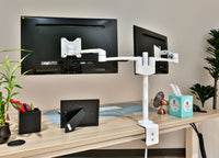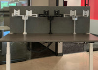 The Dual Arm Monitor Arm is designed to unlock productivity by allowing you to position two monitors side-by-side or back-to-back. Keep cords off your surfaces with integrated cable management and keep your work surface neat and tidy.