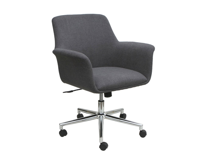 The mid back guest chair is great for company, but let's be honest: you'll probably want to keep it all to yourself. Its sophisticated gray linen fabric is complemented by any of the three base options, including the 5 star chrome base, wood leg base, and metal sled base.