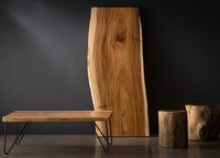 Elevate your workspace with the eye-catching charm of the Sierra Collection accent tables. Handcrafted to showcase the wood's distinctive natural features, each surface is a unique piece. With minimalist black steel legs, these tables effortlessly blend into any office environment, integrating nature, warmth, and functionality.