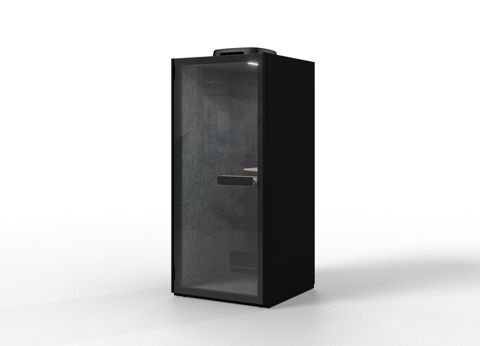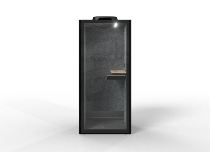 The FLEX Essential Phone Booth for 1 delivers comfort and privacy in a streamlined, easy-to-install design that’s always in stock and ready to ship. Built with high-quality, 98% recyclable materials, its core features include integrated airflow, plug-and-play power, and LED lighting with motion sensors for more energy savings. The entire FLEX Phone Booth collection offers space for productivity at a fraction of the cost and time of construction, and the FLEX Essential’s speed and competitive pricing are designed to get your team to work ASAP. We never compromise on sound reduction: the self-closing door, premium steel exterior, and 5-layer noise-reducing acoustic wall create an oasis of calm for heads-down productivity or calls with remote team members.