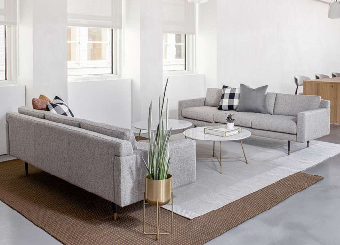 Our Eastin Lounge Series is inspired by urban open spaces - the perfect blend of structure with a dose of warmth through soft shapes. With comfortable cushions and thin faceted legs, this modern sofa will welcome your guests to sit back and relax in sophisticated comfort. Contact Us for more finishes!