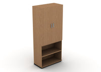 The laminate Bookcase is a versatile shelving unit with adjustable door placement.