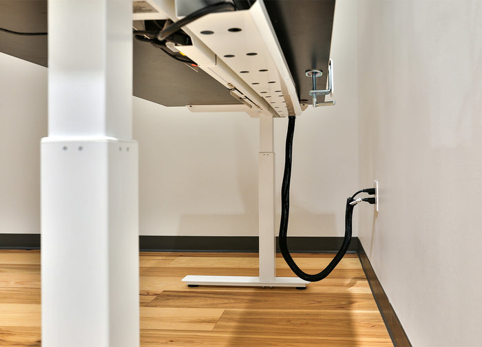 Keep all of your cords tucked away with our sleek and compact Cable Management Tray. It attaches right to the surface and expands to fit any workstation and comes in  3 finishes.
